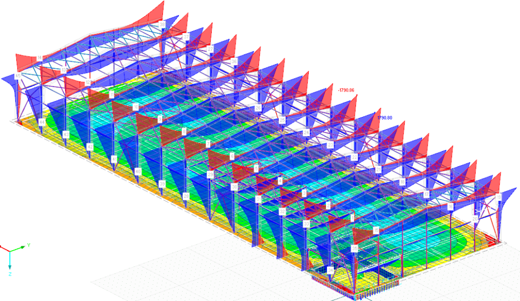 Generell wird in dieser Phase die Strukturanalyse unter Verwendung der Finite-Elemente-Methode durchgeführt und Lastfaktoren und Akzeptanzkriterien werden berücksichtigt, wie sie in den Eurocodes definiert sind.