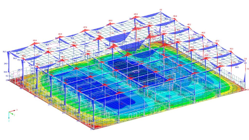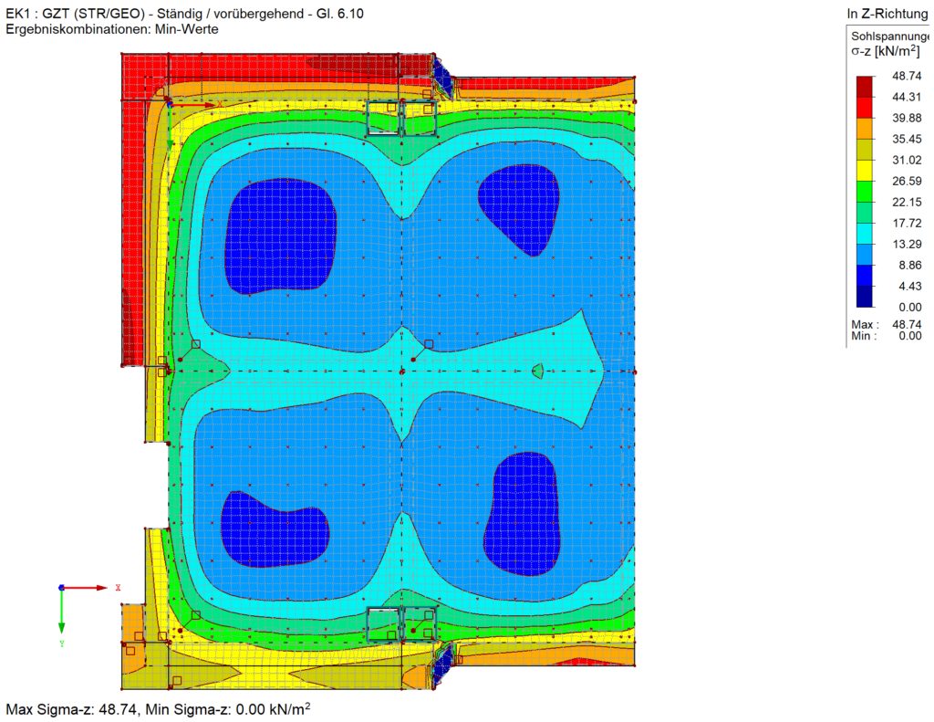 Generell wird in dieser Phase die Strukturanalyse unter Verwendung der Finite-Elemente-Methode durchgeführt und Lastfaktoren und Akzeptanzkriterien werden berücksichtigt, wie sie in den Eurocodes definiert sind.